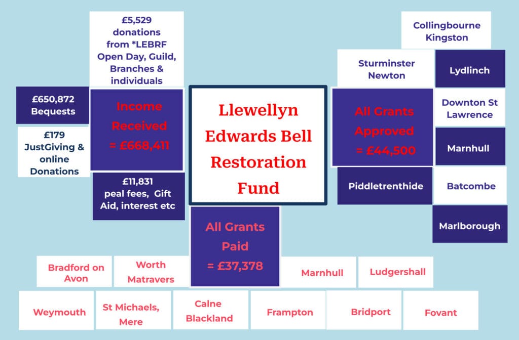 The Fund also benefitted from individual and tower donations, peal fees, money raised from the Open Day and the share of members’ subscriptions passed on by the Guild. Gift aid and bank interest added to our total accumulated funds.