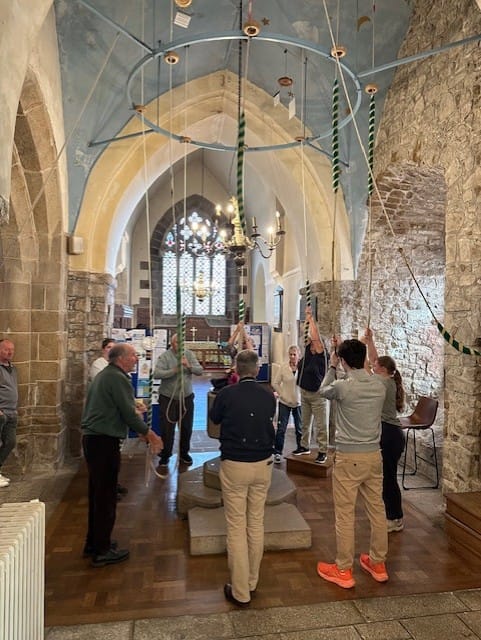 Given the challenges of inter-island travel — involving flights, ferries, or sometimes both — Channel Islands branch practices are held twice a year and traditionally include either a six- or eight-bell striking competition. This spring’s practice, which featured the inter-island eight-bell contest, was hosted at St John’s, Jersey, with 25 ringers attending from Jersey, Guernsey and Alderney.