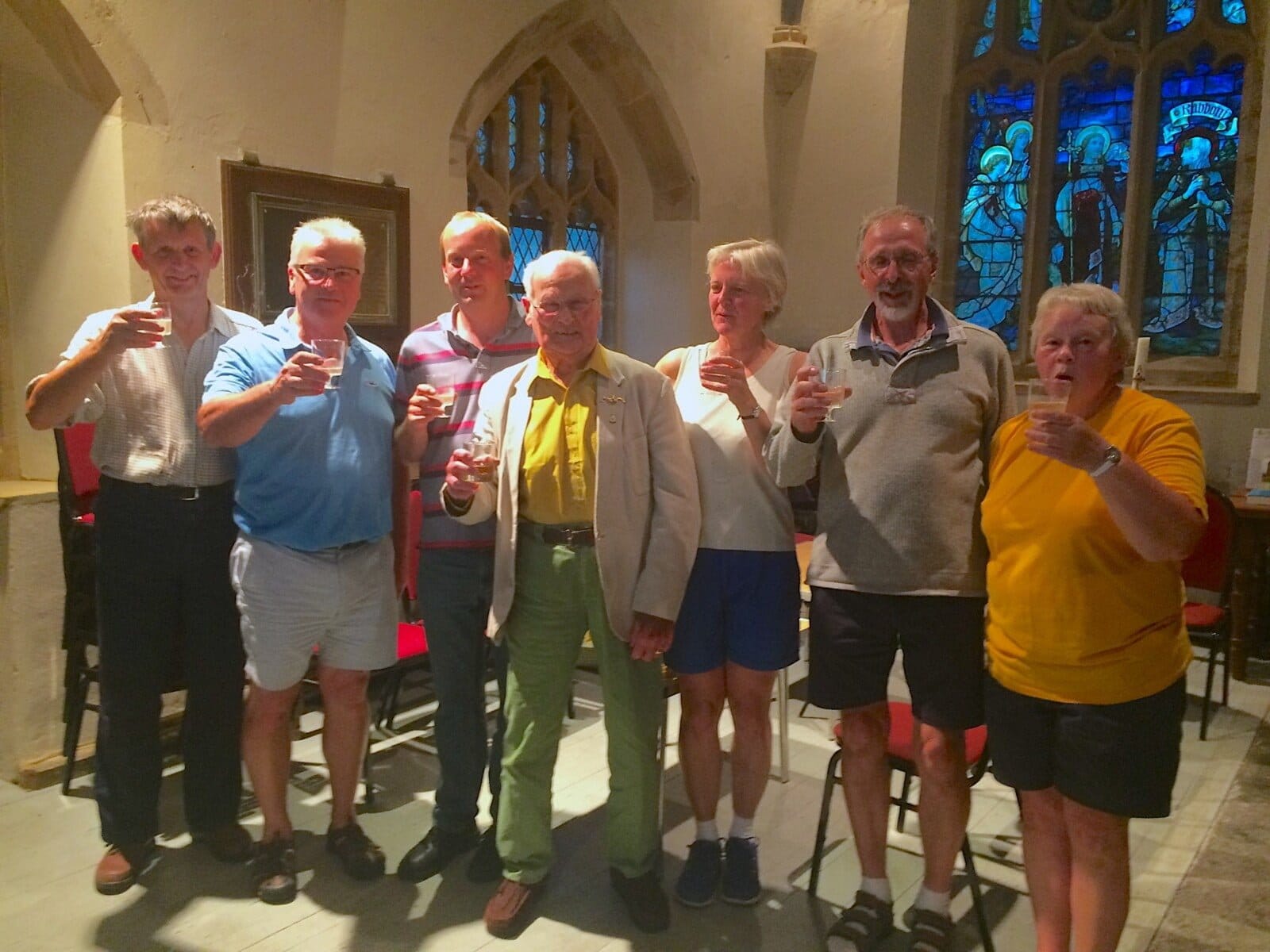 When Leigh bells were rehung in 1996/97 Dennis took an active part in the project and was always very keen to ensure Leigh bells were rung regularly for services even after there were no longer enough local ringers for a regular practice. Following the rehang it became a tradition to ring a quarter peal at Leigh on or about 10th August every year for his birthday. After each of these there were frequently nibbles from the bakery, along with a glass of something – his home made lettuce wine one year.