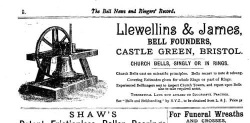 Llewellins and James advert aimed at the bell market from "Bell News" of 5th April 1890: (Image: Whiting Society)