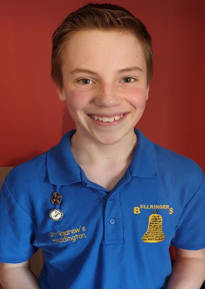 Ben started on his ringing journey at Heddington on 26th July 2017, a few days after his 11th birthday. He picked up the handling basics very quickly passing Level 1 “Learning the Ropes” 0n 30th August. By July 2018 Ben had accomplished Level 2, was confidently able to call changes and was a valuable member of the local band on practise nights and for Sunday service ringing.