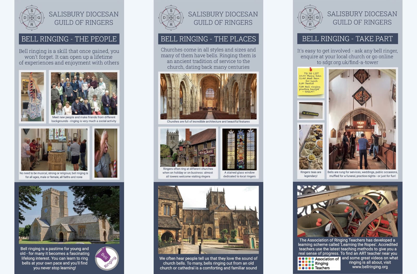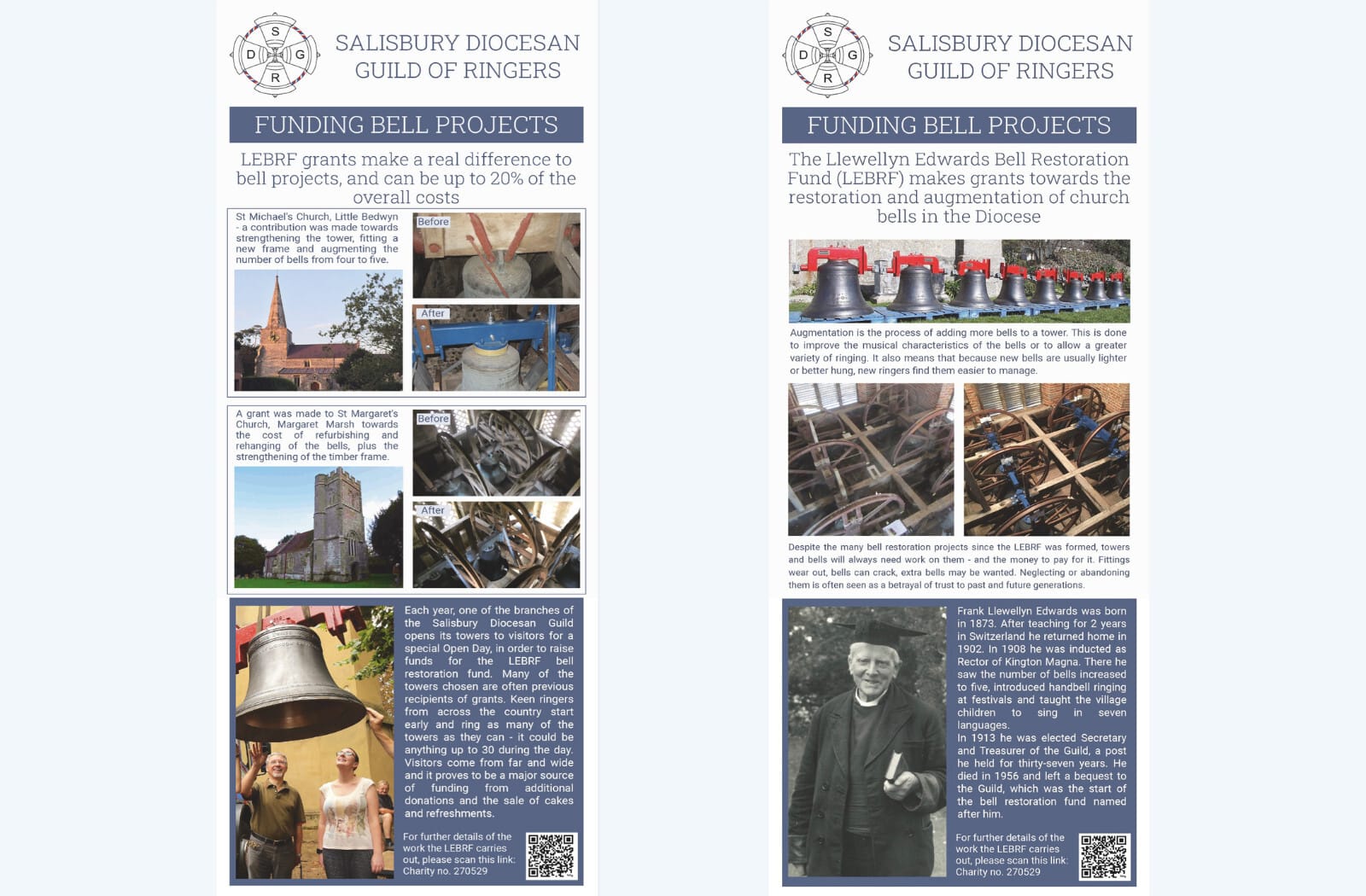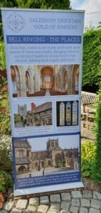 There are five banners in each set – three about bell ringing aimed at the general public and would be suitable for recruitment events as well as more general use, and two promoting the work of the LEBRF. Each is around two metres tall when set up but rolls away neatly and is carried in its own carry case.