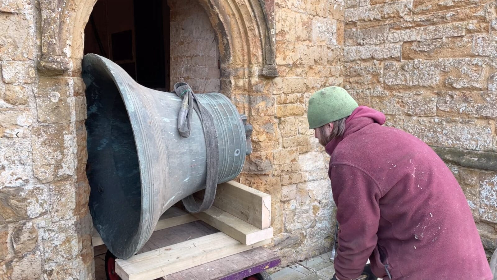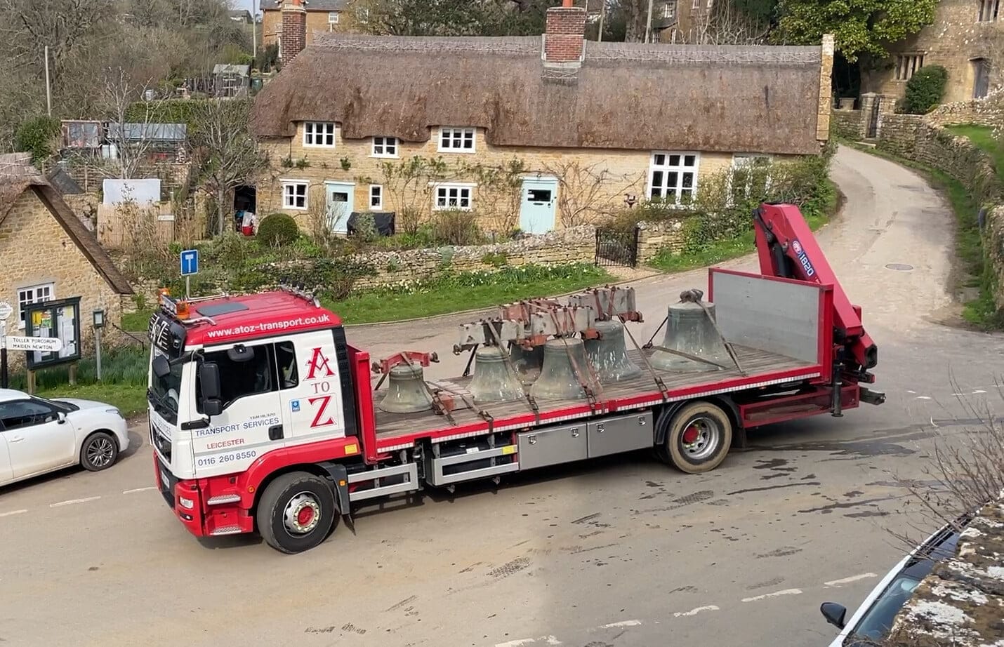 Only a week after the “Big Breakfast”, and still recovering from cooking, serving and clearing up for so many, some of the ringers watched as their bells left St. Mary’s church and were loaded onto a lorry to take them on their journey to Taylors in Loughborough.