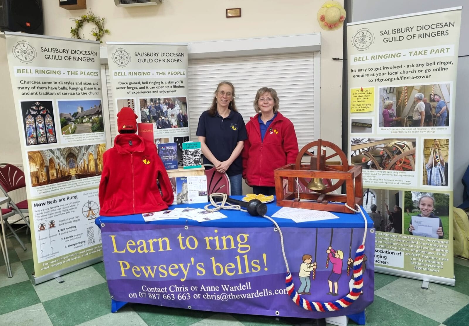 On Saturday 5th April 2025 two Pewsey Vale Bellringers, Sarah Carreck and Lynne Batsford, had a table at the Pewsey Community Event in the Bouverie Hall to promote the heritage art of bell-ringing across the Vale. The Event was organised by Pewsey Parish Council as a showcase for local community groups, clubs and organisations to reach out to people who may not know what is on offer locally, and to encourage them to get involved.