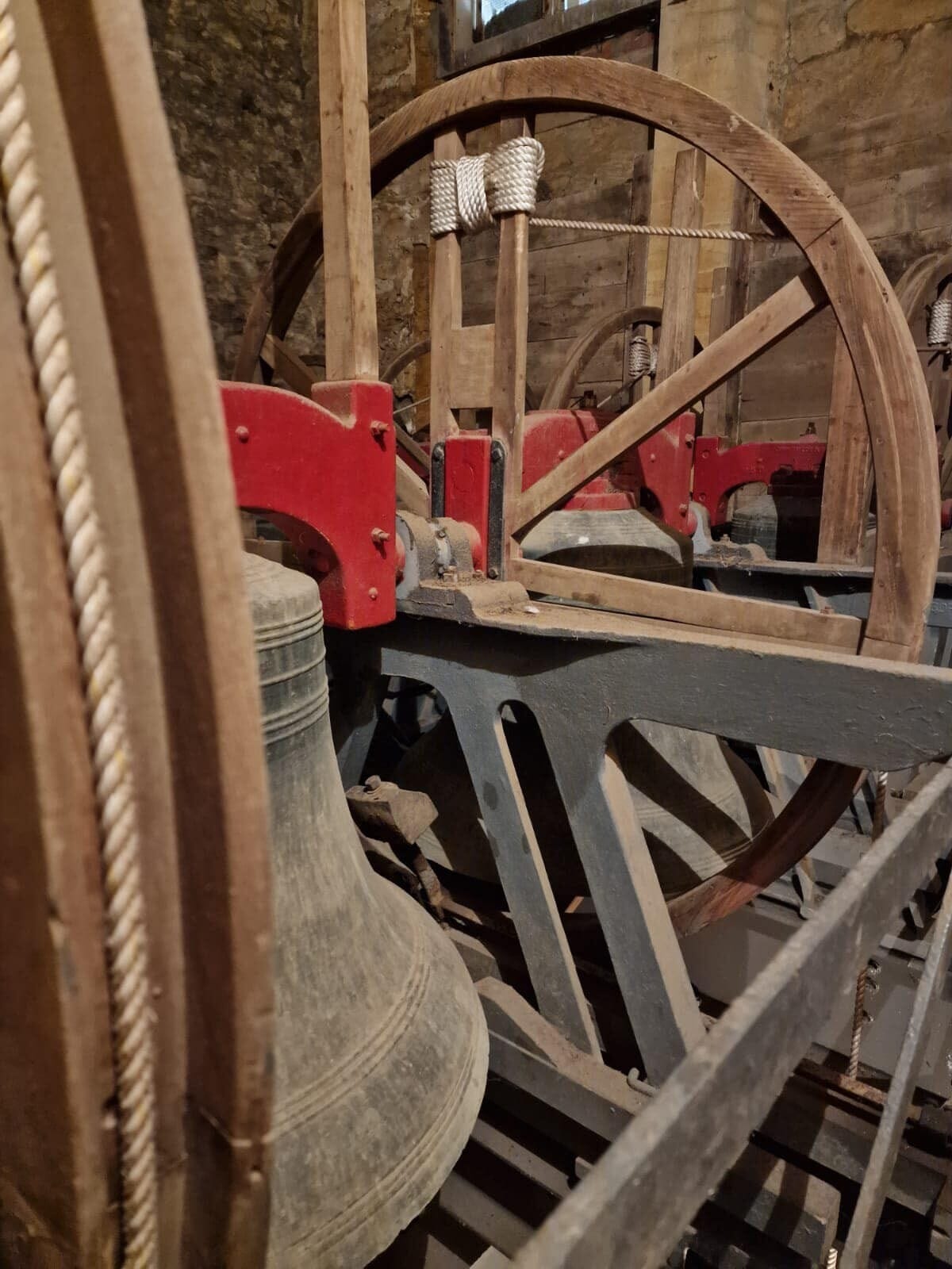 The bells were hung near the top of the tower in 1765 in a new oak frame made by Daniel Sykes, with all new fittings by the Bilbie foundry. Some of these fittings lasted over one hundred years, though how frequently the bells were rung full circle in the early years is dubious, they may just have been swing chimed.