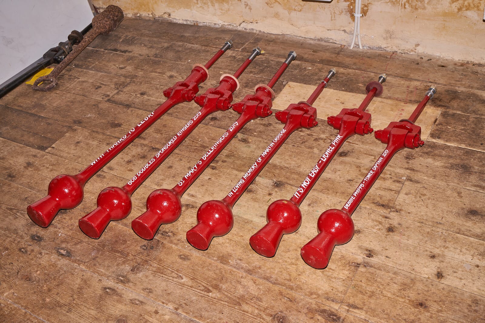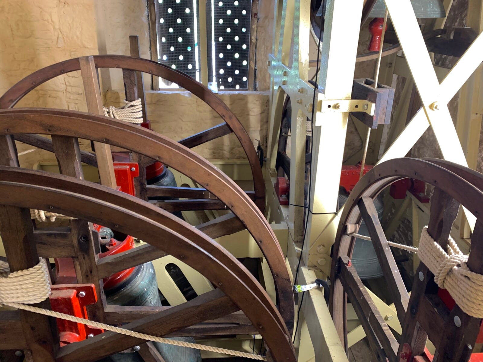 In 1931, the three bells were dismantled and removed from the tower, retuned at Whitechapel, and rehung with new imported elm headstocks and ball bearings, in a new two-tier cast iron frame together with three newly cast treble bells, to make six. Fast-forward to the mid-2010s when a brand new band was being taught on the bells; it was realised that the condition of the bells and their fittings was making things difficult. The elm headstocks had cracks, shakes and splits in them which made the bearings out of alignment, the bells were all chronically oddstruck, and some of the bells were becoming, despite their small size, hard work for even experienced bands to ring.