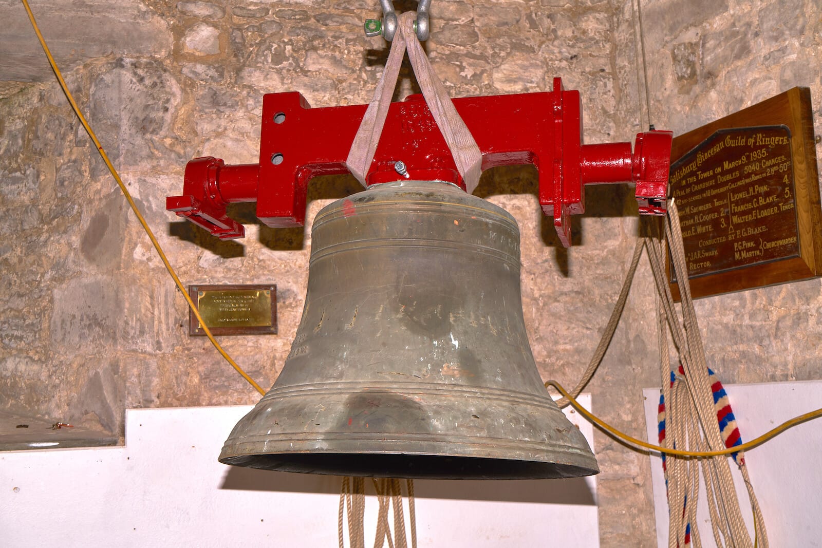 The Church of St Mary the Virgin, now isolated physically from the village, is a Grade I listed Gothic structure, built between 1200 and 1500. The tower is the oldest part of the church, built in the 13th century, and apart from four, small, pierced louvres in the top stage, has an unusually small amount of windows. The early history of the bells is sketchy, at best. In 1552, three medieval bells are recorded, of which the treble of those bells, cast in 1400 by the Salisbury Foundry, is the sole survivor. In 1616, the second was recast by John Wallis of Salisbury, followed by the tenor in 1684 by John Tosier, also of Salisbury. These three bells now form the back three of today’s ring of six, which were formed in 1931 by Mears and Stainbank of Whitechapel, London.