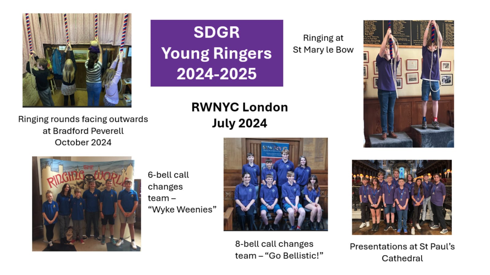 In July last year two groups of young ringers (16 in total), plus parents and supporters, enjoyed a fantastic but hectic day in London at the RWNYC. We rang at five towers including the heavy 12 of St Mary le Bow. In the competition itself, one team rang call changes on 6 bells and the other rang on 8, finishing joint 7th out of 13 teams. The group from Wyke Regis was led by Michael Dillistone and the two groups went round the open ringing towers together. This year’s event will be in Birmingham on 5th July and, I believe, will include the chance to ring on the 16 at St Martin’s in the Bullring. After a slow start, we think that we have a 6-bell call changes band, plus 2 or 3 other young ringers who will join us to enjoy the day out. Thank you to all those who have supported our fundraising efforts, both last year and today. I know that the parents really appreciate the help with transport and accommodation costs.